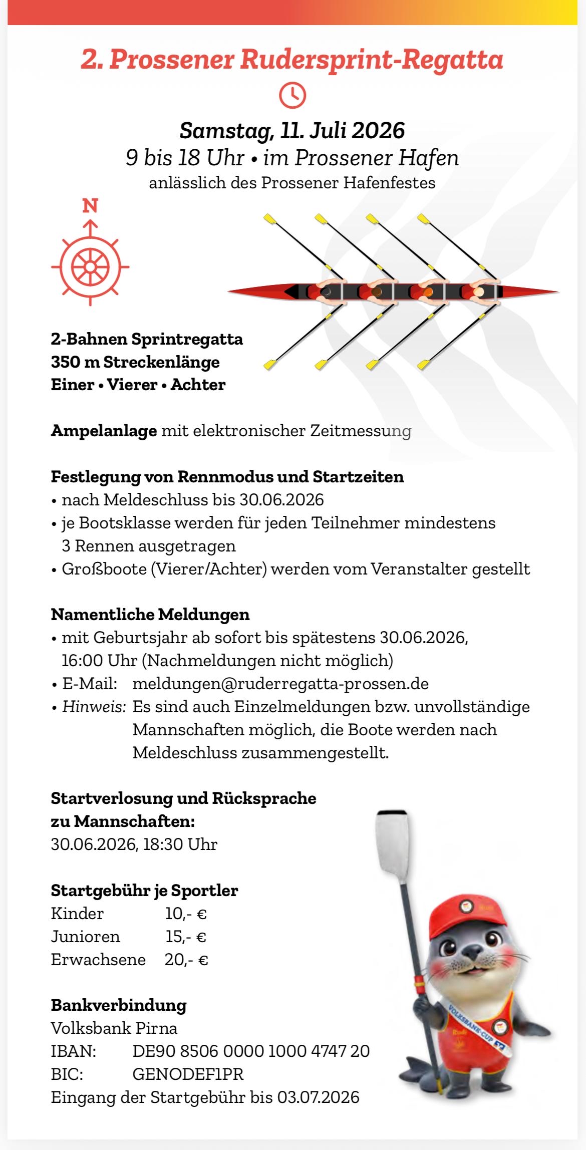 Die Europameisterschaften auf dem Ruderergometer kommen nach Dresden! Vom 22. – 24, Januar 2027 werden über 2.000 Athleten aus ganz Europa im Kampf um die Medaillen erwartet – erstmalig in Deutschland! Parallel werden auch die Deutschen und Mitteldeutschen Meisterschaften ausgetragen.