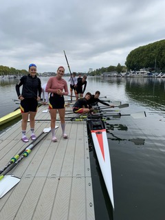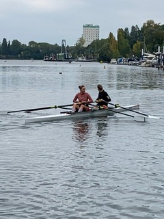 Der Samstag begann früh – allerdings mit dichtem Nebel über dem Hafen. Von unserer Pole-Position aus war das Wasser zeitweise nicht zu sehen. Die Regattaleitung verschob den ersten Start mehrfach, am Ende um ganze zwei Stunden. Unsere Frauen zeigten sich unbeeindruckt: Sie kämpften sich über Hoffnungslauf und Halbfinale bis ins B-Finale, das sie mit großem Einsatz absolvierten. Auch bei den Junioren im Doppelvierer (JM 4x+ B) standen am Samstag gleich drei Rennen an. Am Ende reichte es ebenfalls für das B-Finale. Besonders spannend wurde es für Max Pfeiffer und Tim Beck: Nach ihrem Einsatz im Vierer stiegen sie direkt in den Doppelzweier um – ihr vierter Start an diesem Tag! Dennoch gewannen sie ihren Vorlauf souverän, was uns einen entspannten und ruhigeren Sonntagmorgen bescherte.